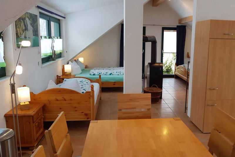 Schlafzimmer: 1 Schlafzimmer mit 2 Einzelbetten 90x200, TV, 1 Schlafzimmer mit 5 Einzelbetten 90x200, Schwedenofen, Couch, Esstisch mit Stühlen, Safe, Smart-TV