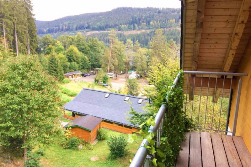 2 dormitorios, 2 salas de estar, cocina, baño, balcón y una terraza llenarán sus vacaciones de confort y otorgará espacio para toda la familia. Nuestra casa vacacional “Vogelnest” se sitúa justo sobre el Camping con vistas al lago Titisee.